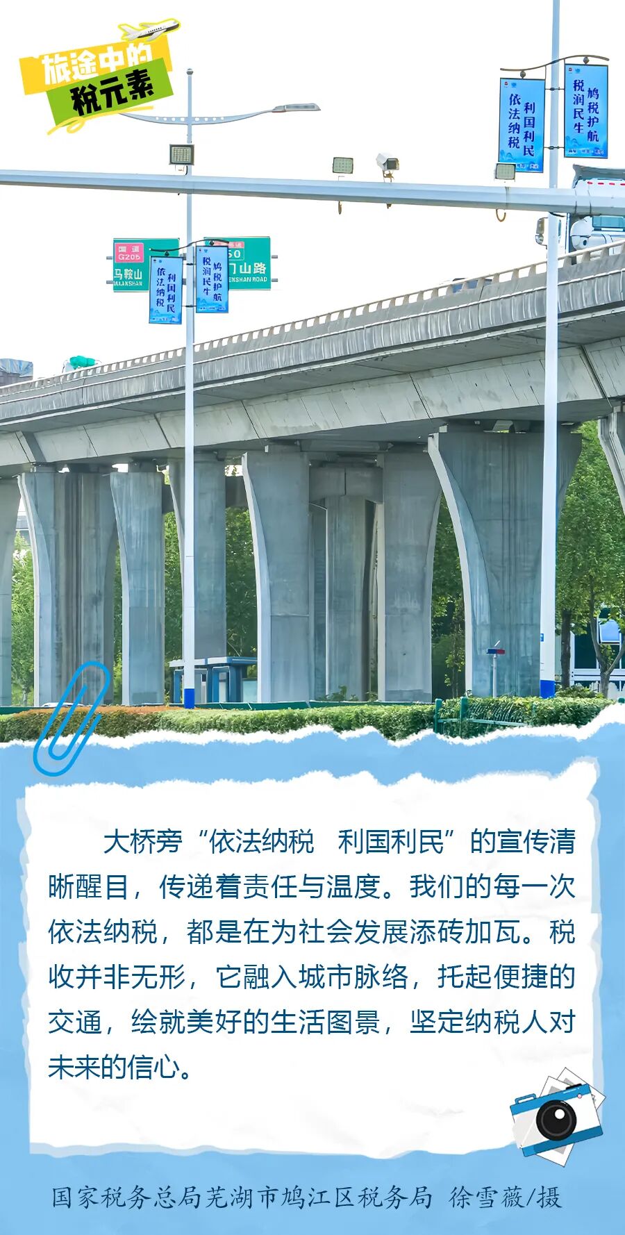 每一段铁路的延伸,每一座桥梁的架起,每一处免费公园的开放,都离不开税收的坚实支撑。税收取之于民,用之于民。近日,中国税务报客户端发起互动话题,寻找旅途中的“税”元素,网友们纷纷晒出照片。我们选取了不同角度的几张照片刊发,也欢迎朋友们在文末评论区留言互动,晒一晒你在旅途中发现了哪些“税”元素。