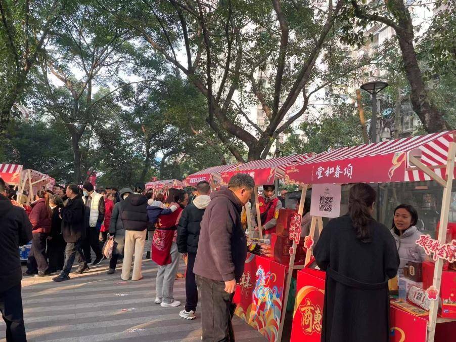 人民网重庆1月13日电 (陈琦、刘敏)新春送福到社区,好货惠民零距离。1月13日,2026邻里商惠节·新春大集在渝中区桂花园体育文化公园火热开市,40余家优质商家携数百种特惠商品到场,吸引众多市民前来采购年货。